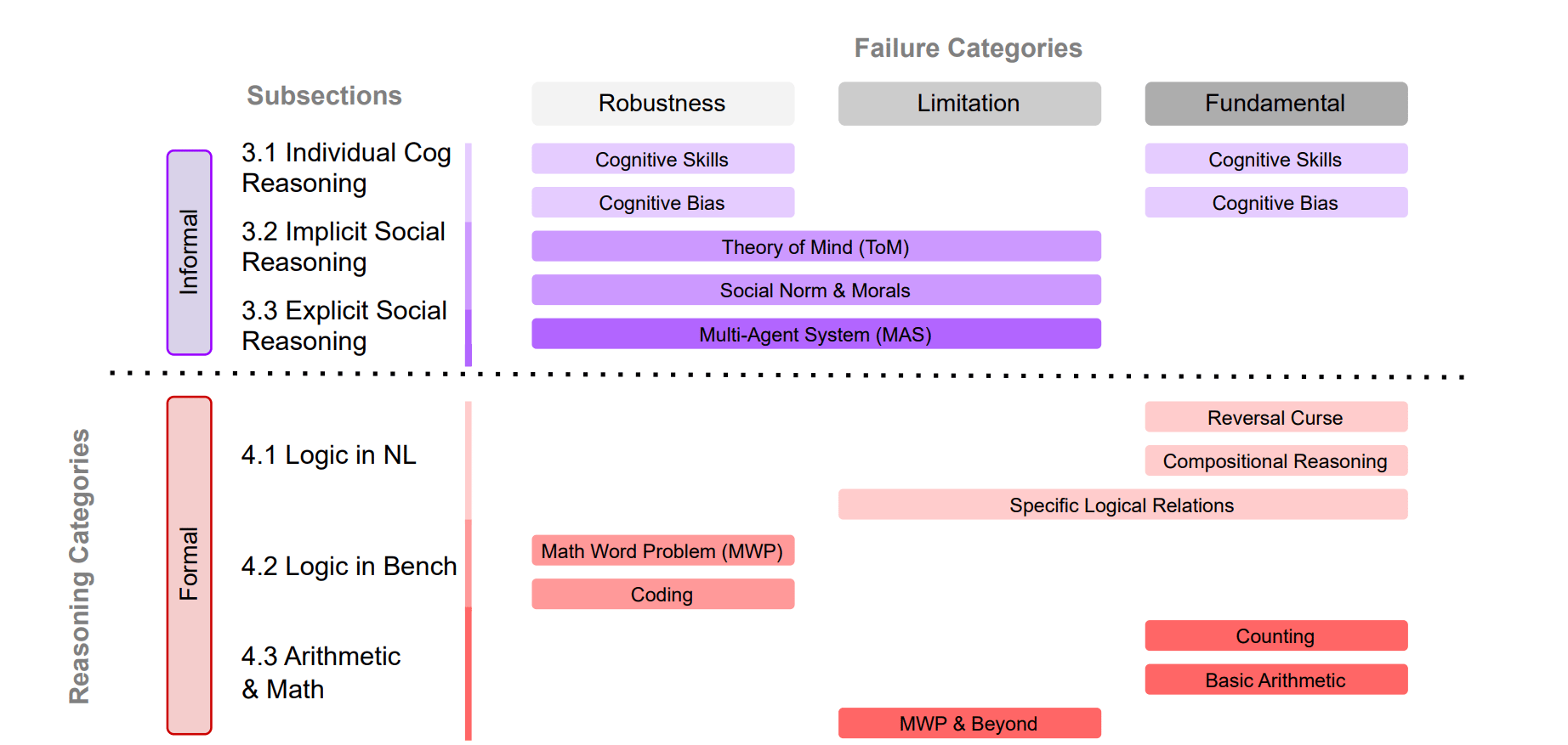 A classification of LLM reasoning failures. Image: Song et al, arXiv:2602.06176